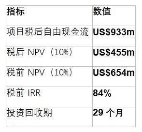 在这一保守假设下,项目仍可实现超过 9 亿美元的税后自由现金流,并取得77% 的税后 IRR,凸显出项目的盈利韧性与抗风险能力。