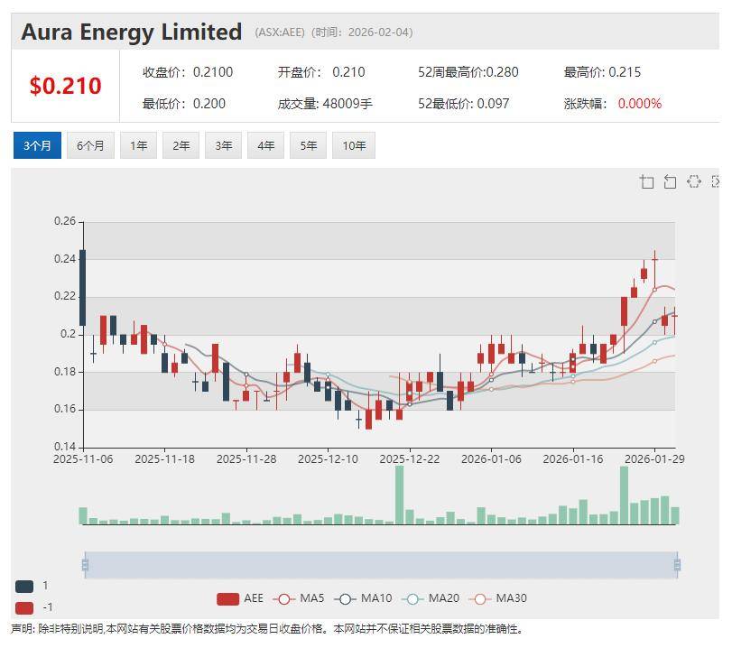 Aura Energy表示,此次配股共以每股0.205澳元价格发行约9760万股普通股,实际认购需求超过所筹资金目标。