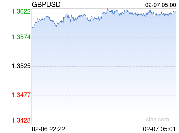新浪外汇消息2026年02月07日,截至05时00分,外汇市场上英镑兑美元汇率突破1英镑兑换1.3616美元。涨幅为0.6728%