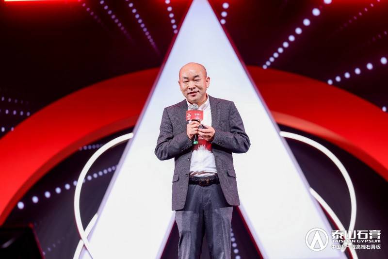 (北新建材党委书记、董事长、总经理,泰山石膏董事长管理在演讲中强调泰山石膏重新定义了石膏板)
