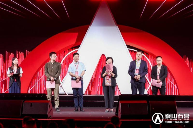 由14位泰山家人带来的诗朗诵《五十四年·泰山石膏礼赞》,深情歌颂了泰山石膏五十四年来的磅礴发展,令现场嘉宾深深动容。泰山石膏大经销商代表、工程客户代表、家装客户代表、设计师代表、战略合作用户单位代表、品牌全案战略合作伙伴代表的亲切贺信,引发现场强烈共鸣。荣耀举行的泰山金砖颁奖盛典,为泰山石膏多方合作伙伴依次颁发“泰山金砖二十大杰出经销商成就奖”、“泰山金砖杰出经销商成就奖”、“泰山金砖杰出战略合作成就奖”、“泰山金砖杰出家装客户成就奖”、“泰山金砖杰出设计贡献奖”、“泰山金砖智慧营销先锋奖”,向为泰山事业的奋斗者、引领者致敬。