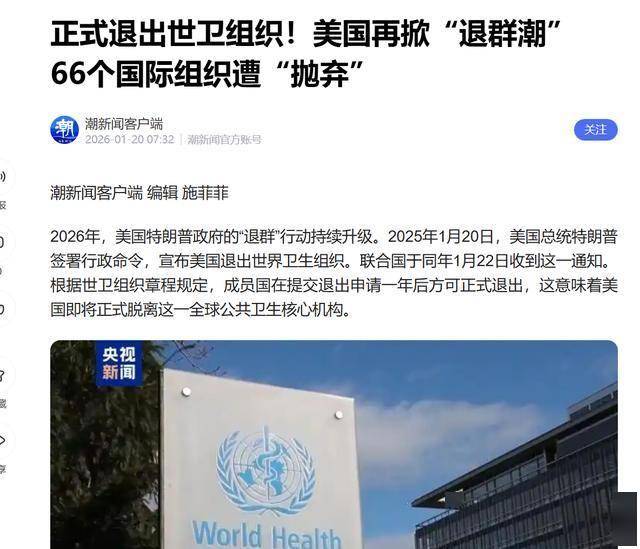 前段时间,特朗普签署总统备忘录,直接宣布美国会退出66个不再符合国家利益的国际组织,这在美国外交史上都算是开了先河。