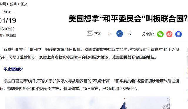 特朗普政府如今正积极筹划一个名为“和平委员会”的新国际组织,并且按照所暴露的消息来看,特朗普是想要把它建设能够对抗甚至能取代联合国的新国际组织。