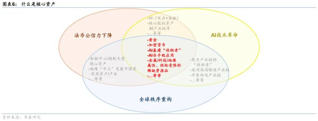 关注黄金之外核心资产的配置机会。我们在去年4季度提出全球秩序重构、法币公信力下降、以及AI技术革命三大宏观趋势将在中长期影响全球大类资产相对表现(参见,2025/10/29,图表6)。往前看,法币公信力下降的趋势可能在中期均难以逆转,我们也不妨拓宽思路,寻找黄金以外的核心资产。