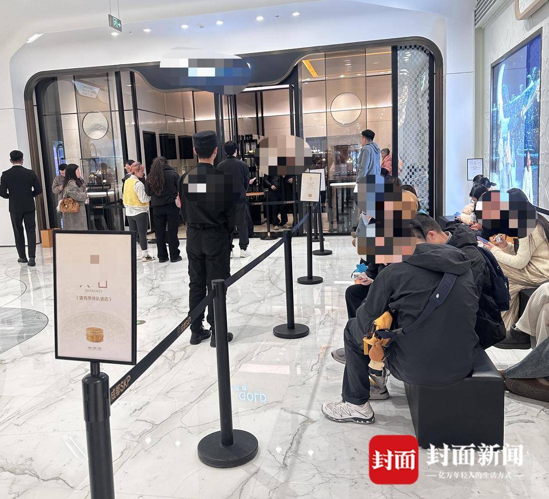 1月26日,封面新闻记者实地探访成都SKP商场发现,多家知名金店门口已然排起长龙,某些金店门口不少消费者带着小板凳坐着排队。随后记者上前询问金店工作人员如何排队,销售人员表示需要线上扫码排号,14时26分,记者扫码排号162位,前方还有117位顾客。
