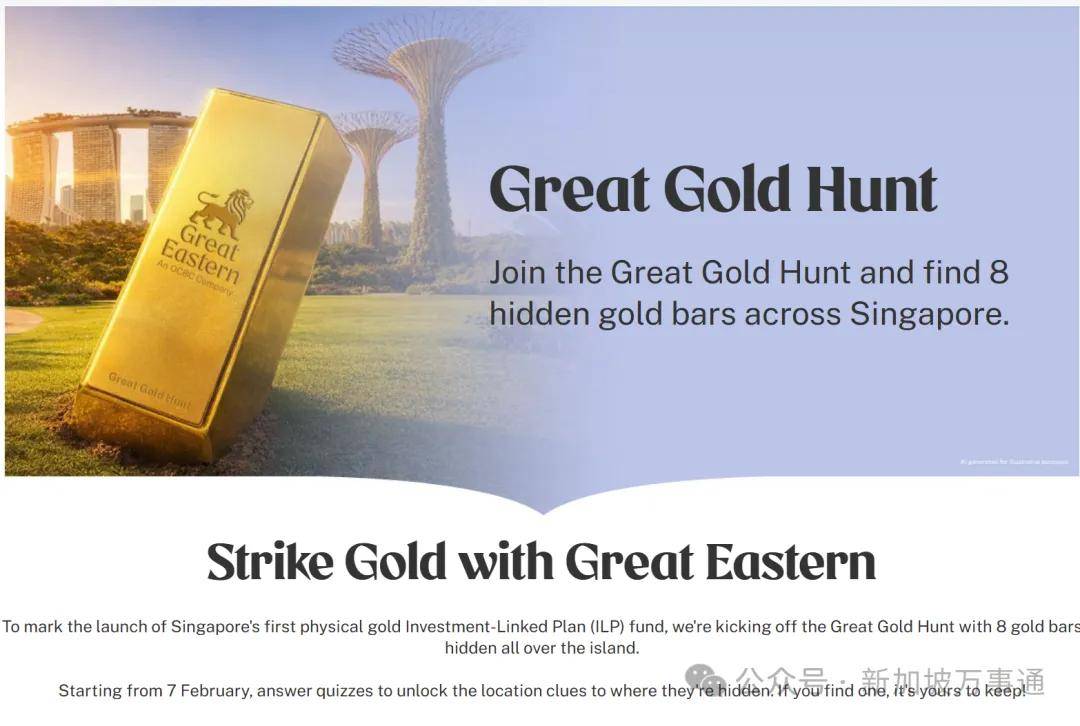 为庆祝新加坡首个实体黄金投资连结保险计划基金正式推出,大东方(Great Eastern)特别发起了一场全岛参与的Great Gold Hunt“全岛大淘金”行动,在新加坡各处藏下了8根金条,等你来找!