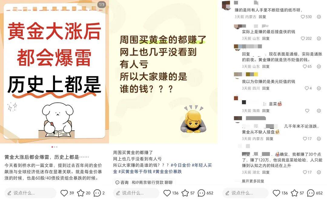 有人觉得普通人终于等来了暴富时刻,开始临阵磨枪学习实物黄金、黄金ETF、银行预存金的区别,准备好好捞上一笔;有人担心自己成为高位接盘的韭菜,一边羡慕别人晒出的黄金收益,一边迟迟不敢动手。