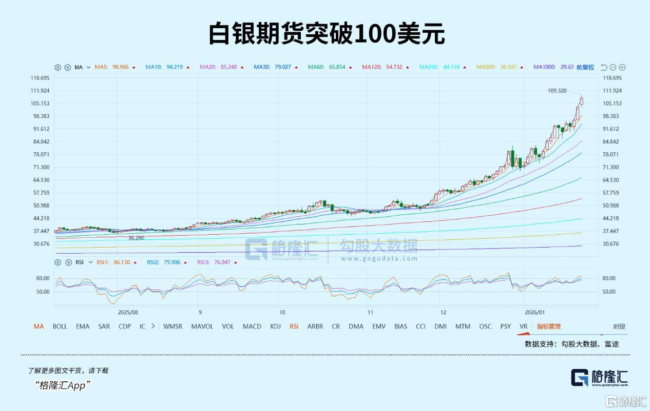 在金价冲破5000美元前,白银亦于上周五突破100美元。