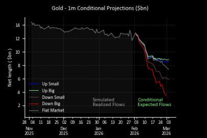 此外,量化基金的动向加剧了下行压力。根据高盛的预测模型,大宗商品交易顾问(CTA)策略在黄金和白银上均已转为卖出或维持卖出模式。Menthor Q的数据也显示,白银市场经历了激进的强制性抛售。尽管高波动性可能吸引部分卖出波动率的策略以寻求收益增强,从而在短期内起到稳定作用,但在新的方向性走势出现前,金价可能需要时间进行盘整。