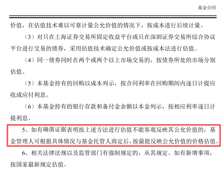 调整估值方式就不多说了,《基金合同》写的很清楚,常规估值方式不能反映公允价值的,可以采用能反映公允价值的估值方式。