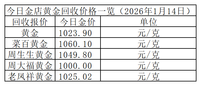 今日黄金回收价格持续上涨中,不同品牌回收价差也较大,以下为部分金店回收参考价: