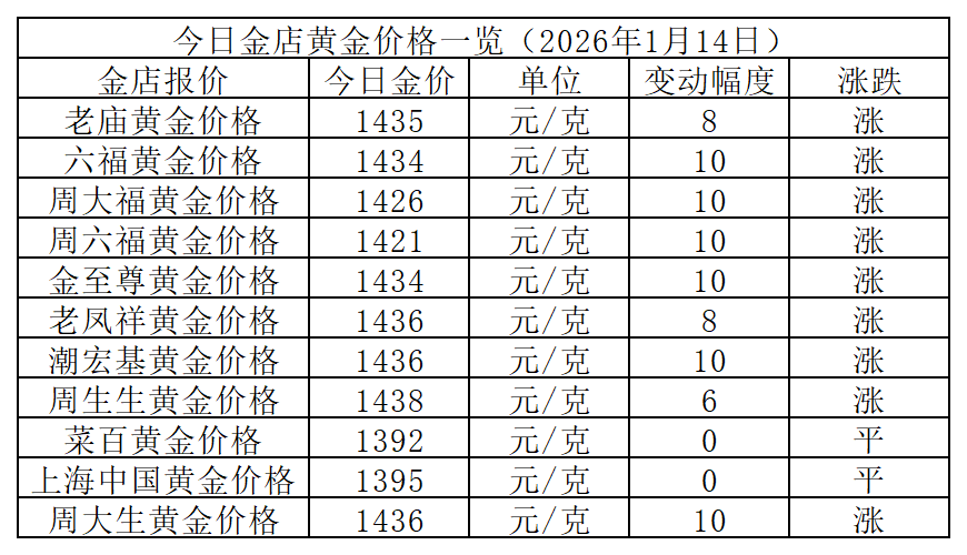 以下是各大品牌金店详细报价: