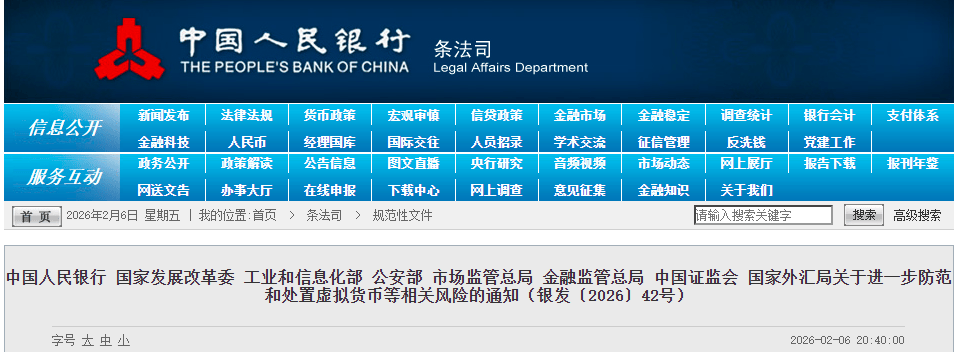 2月6日,中国人民银行、证监会等8部门联合发布《关于进一步防范和处置虚拟货币等相关风险的通知》(下称《通知》),再度明确虚拟货币相关业务活动属于非法金融活动,并强调在境内开展现实世界资产(RWA)代币化活动以及提供有关中介、信息技术服务等,涉嫌非法发售代币票券、擅自公开发行证券、非法经营证券期货业务、非法集资等非法金融活动,应予以禁止。