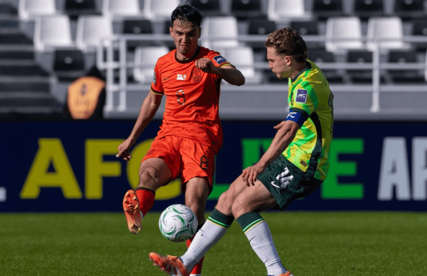上半场比赛开始后,中国队比赛情况与第一轮类似,虽然控球率不占优势,但防守阵型保持得非常好,没有给对手留下很好的进攻机会。第14分钟,麦卡利斯特头球攻门毫无威胁,4分钟后,阿拉吉奇的远射打上看台。第25分钟,中国队利用前场定位球攻入澳大利亚禁区,在混战中,木塔力甫未能完成射门。
