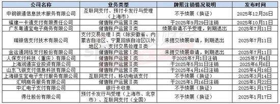 2025年是支付行业监管深化的关键年,12家支付机构的牌照注销案例呈现多元化特点。