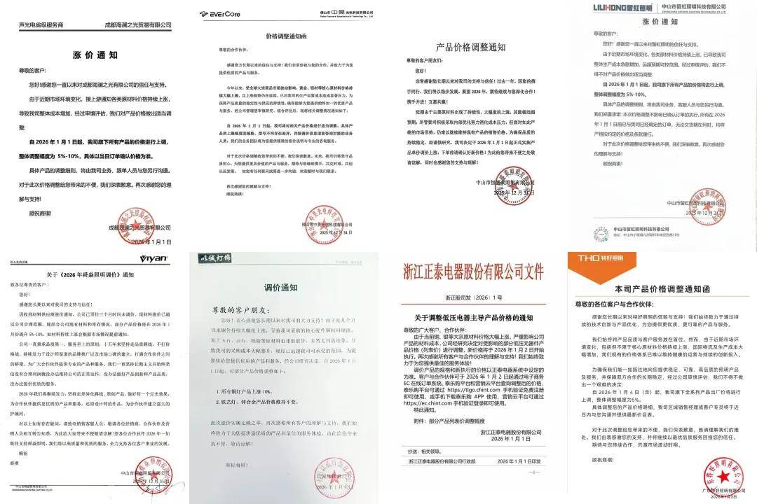 当前灯企涨价已进入“中期传导阶段”。2025年第四季度是上游封装企业调价高峰,2026年1月是下游成品企业集中调价期。国际企业如ADI(2026年2月)、ROHM(2026年3月)的调价计划,可能进一步带动国内企业跟进。