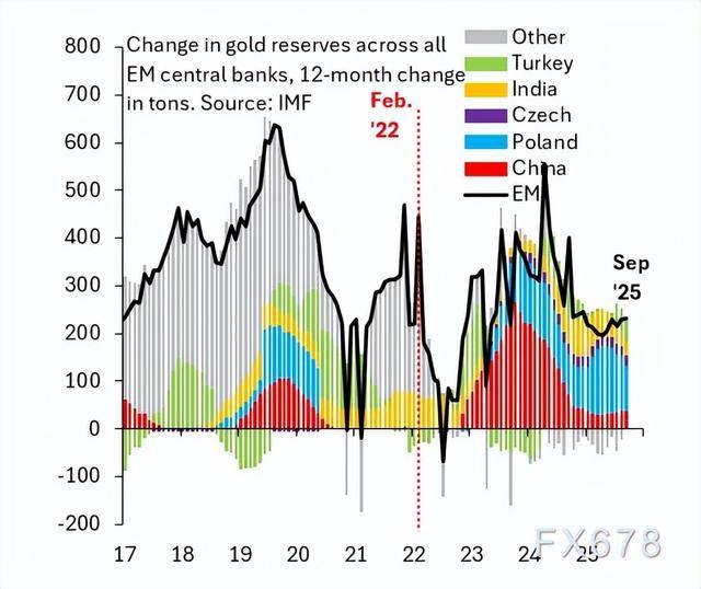 其次,央行确实在购买黄金,但其节奏缓慢而平稳,并未陷入能够解释当前金价大幅上涨的“疯狂抢购”状态。