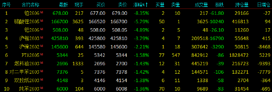 2026年1月27日,早盘开盘,国内期货主力合约多数下跌,沪银涨近4%,棕榈油、合成橡胶涨超1%。跌幅方面,铂跌超8%,碳酸锂跌超5%,钯跌超7%,沪锡跌超4%。