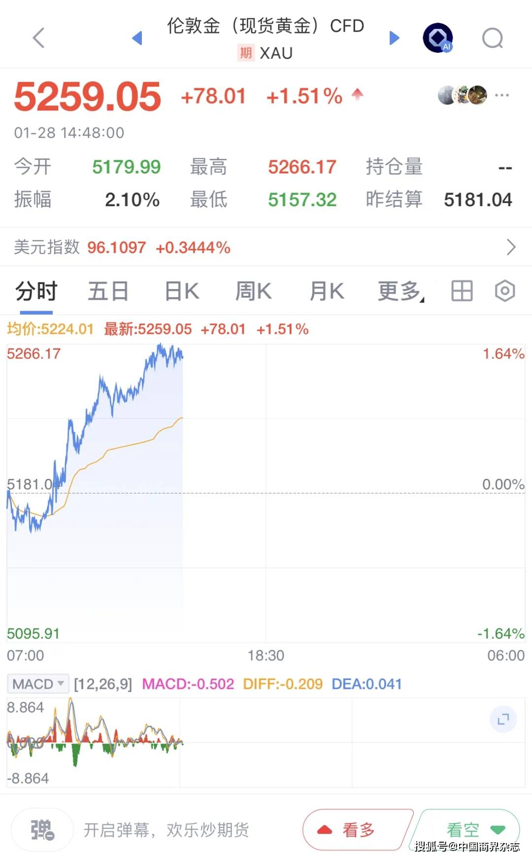 1月28日早盘,国际现货黄金突破5200美元/盎司关口,续创历史新高。白银价格也迎来罕见的剧烈上涨,过去一周涨幅超过14%,现货白银价格冲破110美元/盎司,创历史新高。