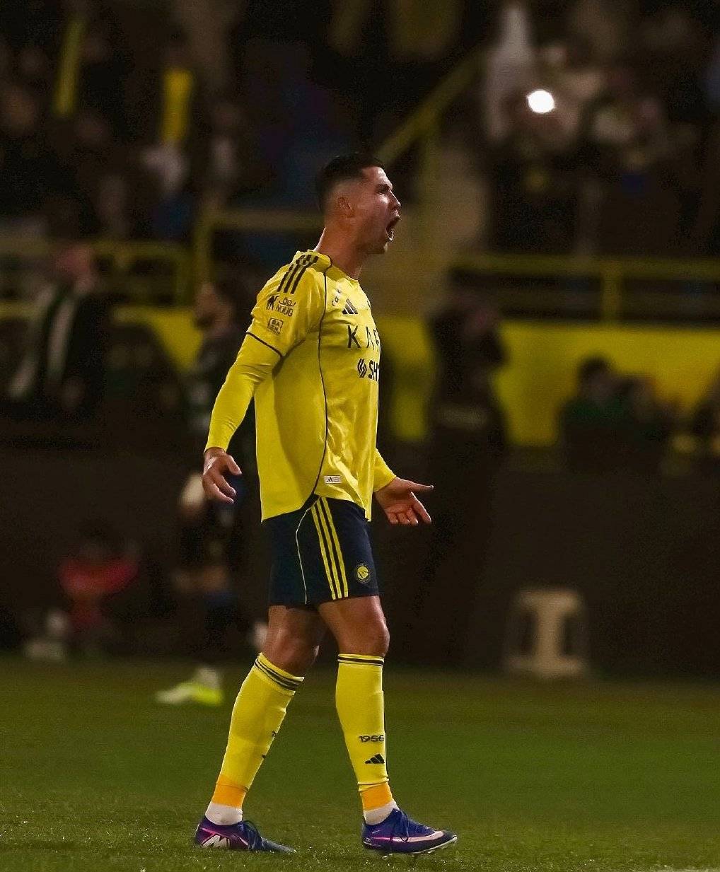 C罗面对后卫就是抬起巴掌,看起来要复刻他在英超把那个患有自闭症和运动障碍的小孩手掌打肿的动作,这个动作也像他在利雅得德比肘击对手后对裁判的背后恐吓。C罗还让对手闭嘴,并且向对方翘屁股,还指着大腿,甚至拉着对方的手要他扶自己的腰,不知道要干什么。比赛结束的时候,评分全场倒数、0进球0助攻的C罗握拳怒吼庆祝,各种方向地吼,还起哄让不知道几个的主场球迷跟着一起吼。
