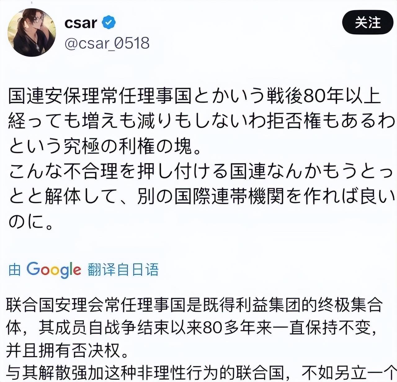 因此,特朗普的日语言论,不仅是羞辱,更是一种警告:日本应当明白,做美国的小弟,就得有小弟的样子,别总是想着借着美国的虎皮,去谋取自己无法负担的政治地位。回头看看日本网民叫嚣的退出联合国,这更像是一种无力的狂怒。日本的经济结构、能源通道、贸易网络,哪一项能脱离现有的国际体系?退出联合国,意味着日本自绝于国际社会——它既没有那个胆量,也没有那个实力。看似闹剧般的局面,实则早已昭示出结局。日本要想进入安理会常任理事国,想要获得国际社会的尊重,走的路却完全是反向的。它误以为,紧紧抱住美国大腿、扩充军备、制造周边紧张局势,便能换来大国地位。