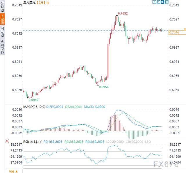 市场反应并计入更多加息预期 澳洲联储的鹰派转向立即波及金融市场。在11:30左右澳洲联储利率决议公布后,澳元立刻显著拉升。周二欧市时段,澳元兑美元交投于0.7020附近,日内涨幅约1.1%。