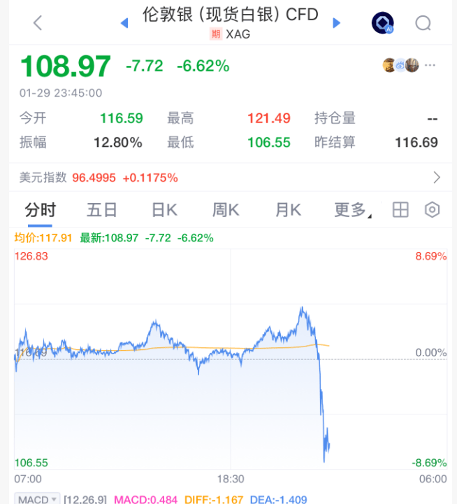 国际贵金属期货深夜巨震,黄金白银盘中跳水,一度回吐全部涨幅,最终普遍收涨,COMEX黄金、COMEX白银均涨超1%。截至北京时间1月30日7:00,黄金白银延续涨势。