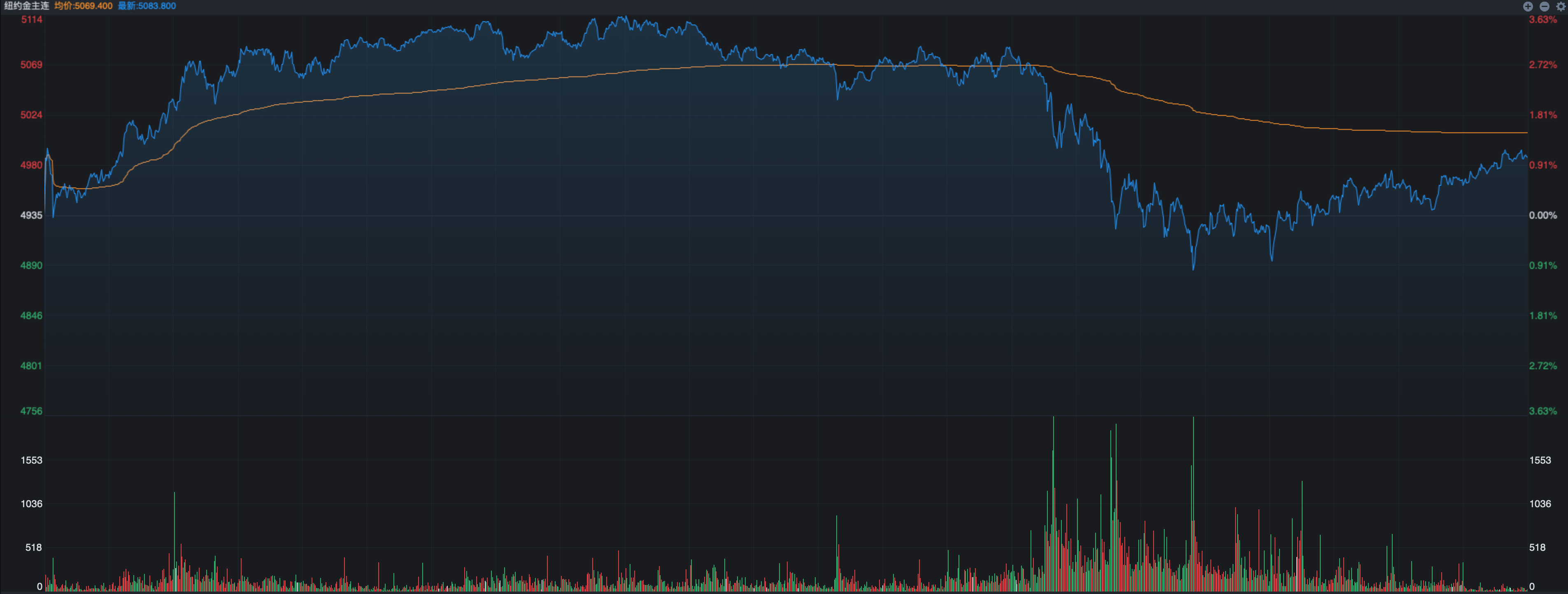 对黄金来说,盘中也一度跳水,从涨幅2.72%到了下跌1%,收盘时黄金期货在4980美元。