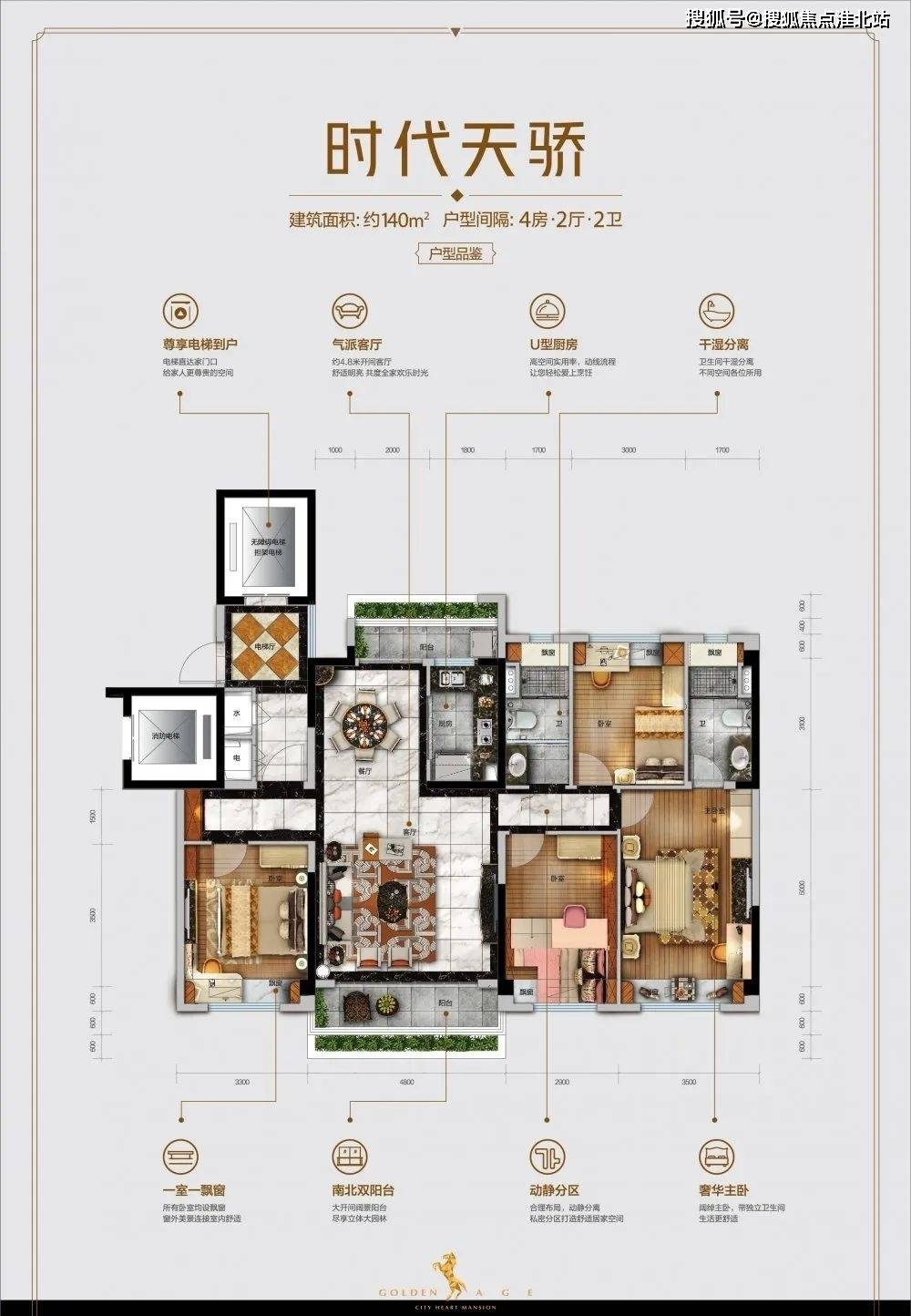 户型:119㎡3+1房,140㎡4房