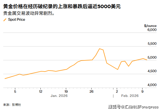 ATFX:在经历了上周的历史性暴跌之后,金价连续两天上涨,周一,受美元走软至一周低位的提振,金价上涨2%,不过今早的涨势暂缓,因为投资者在震荡的市场中获利了结,等待美国关键就业报告。今日金价早盘一度下跌1.4%,短暂跌破每盎司5000美元,随后收复部分失地。自1月29日创下历史新高以来,金价已下跌约10%,但今年以来仍保持较高水平。