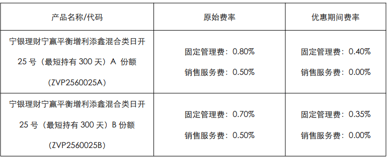 1月21日,宁银理财发布两则产品费率优惠公告,旗下多款产品销售服务费费率降至0%,优惠时间至2026年年末。