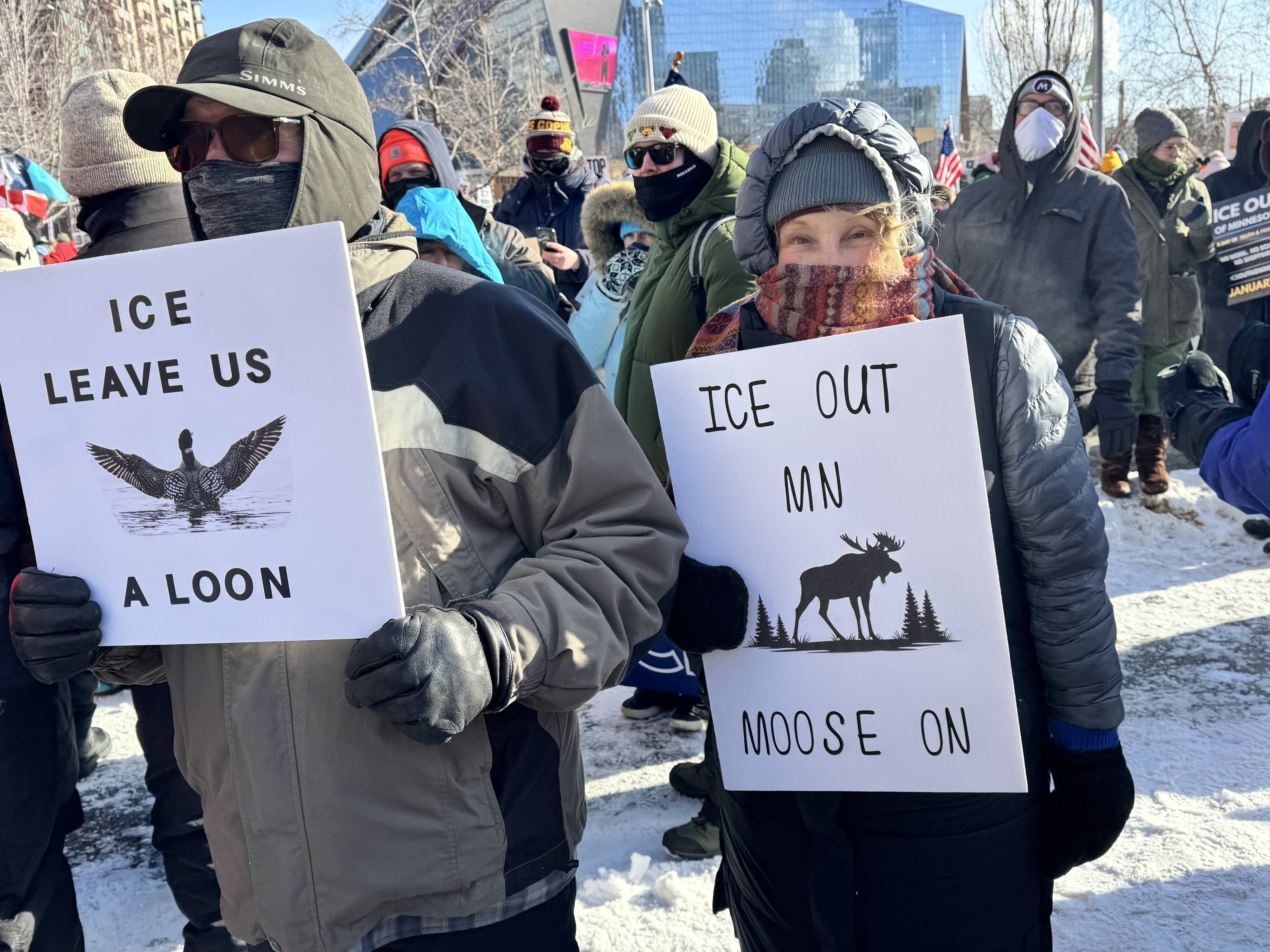 1月23日,抗议者在美国明尼苏达州明尼阿波利斯市参加集会,抗议移民与海关执法局(ICE)针对非法移民的暴力执法。新华社发