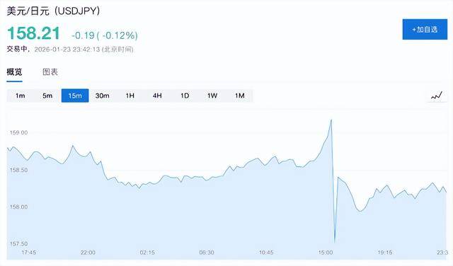 1月23日,日央行维持政策利率不变,但上调经济增长预期并释放出未来可能进一步加息的信号。然而,这一偏鹰派立场并未能阻止日元走软,美元兑日元一度逼近160的关键心理点位,随后汇率突然大幅上涨,引发了市场对官方干预的广泛猜测。财政大臣片山皋月对此未正面回应。