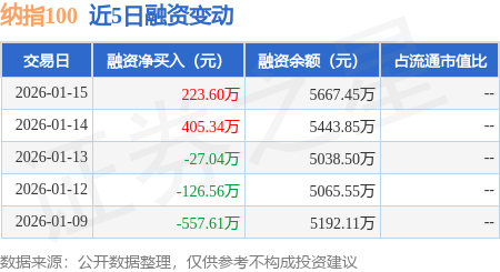 证券之星消息,1月15日,纳指100(159660)融资买入742.93万元,融资偿还519.32万元,融资净买入223.6万元,融资余额5667.45万元。