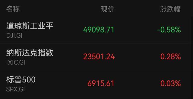 ►►当地时间上周五,美股三大指数收盘涨跌不一,道指跌0.58%,纳指涨0.28%,标普500指数涨0.03%。贵金属板块领涨,泛美白银涨超4%。科技股涨跌不一,微软、奈飞涨超3%,AMD、亚马逊涨超2%;英特尔跌超17%,创2024年8月以来最大单日跌幅。周线方面,道指本周累跌0.53%,纳指累跌0.06%,标普500指数累跌0.35%,三大指数均为连续第二周下跌。